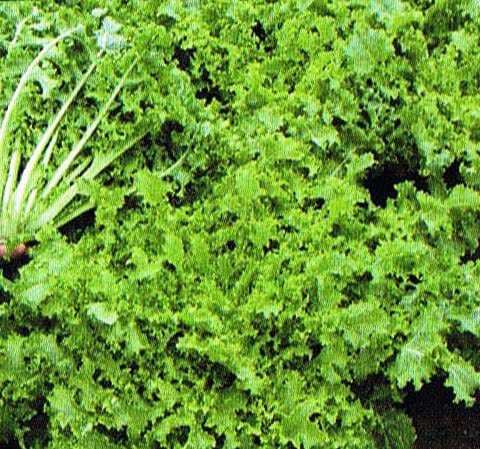 Deep-cut, fringed outer leaves, medium green with a pale green midrib; blanches easily. 1/4 oz sows a 100′ row.