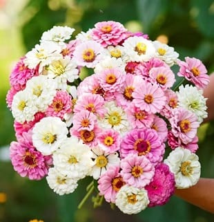 24-36″ This gorgeous mix of easy-to-grow annuals offers a sophisticated blend of rose, pink, and white zinnias. The prolific blooms are an excellent choice for a cutting garden, providing an abundance of flowers for fresh bouquets. Their vibrant colors and sturdy stems also make them a versatile and reliable choice for adding vertical interest to borders or containers. As a major bonus for gardeners, these blooms are known for attracting a variety of pollinators, including bees, butterflies, and hummingbirds.