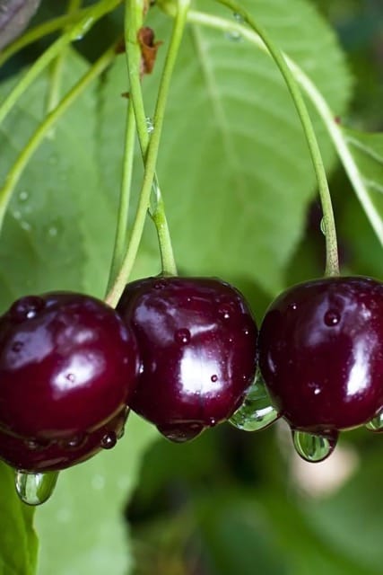 Late-Season . Large, dark well-flavored fruit. Easy to grow. Crack resistant. Self-fertile tree, but also a good pollinator for other varieties. Zones 5-8. Harvest : Mid July