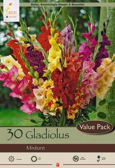 Ht. 56-60″ Start off growing gladiolus with this mix that has it all. As easy as it gets to grow a rainbow of color. Tall plants make a perfect backdrop for gardens or use in bouquets.
