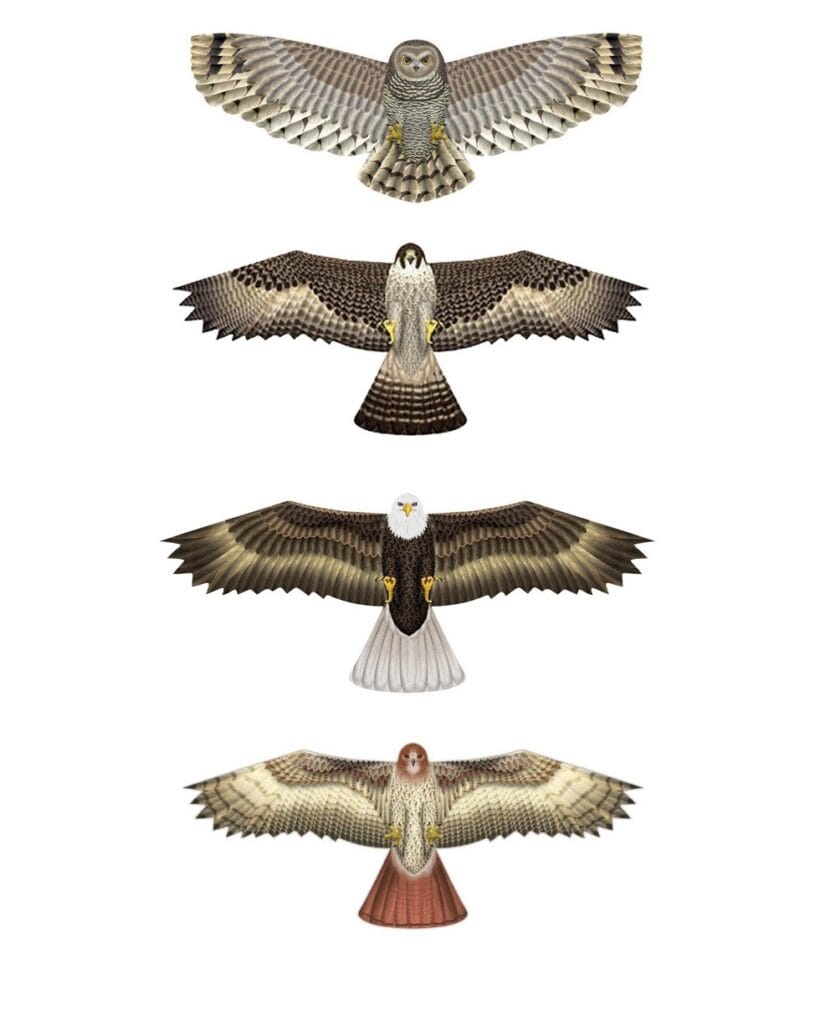Soar and glide in the breezes with these sturdy nylon kites designed as birds of prey. Wingspan 30 1/2″. Wind Range 7-15 mph.