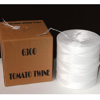 White, sturdy poly twine with a tensile strength of 59 lbs. Can be used for your tomatoes, peppers or any other crops that need trellis support. 3 lb. ball has 6,300′